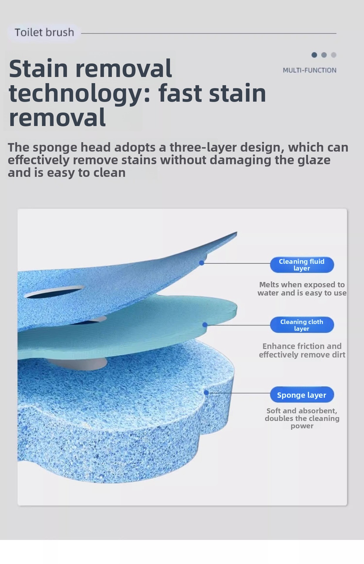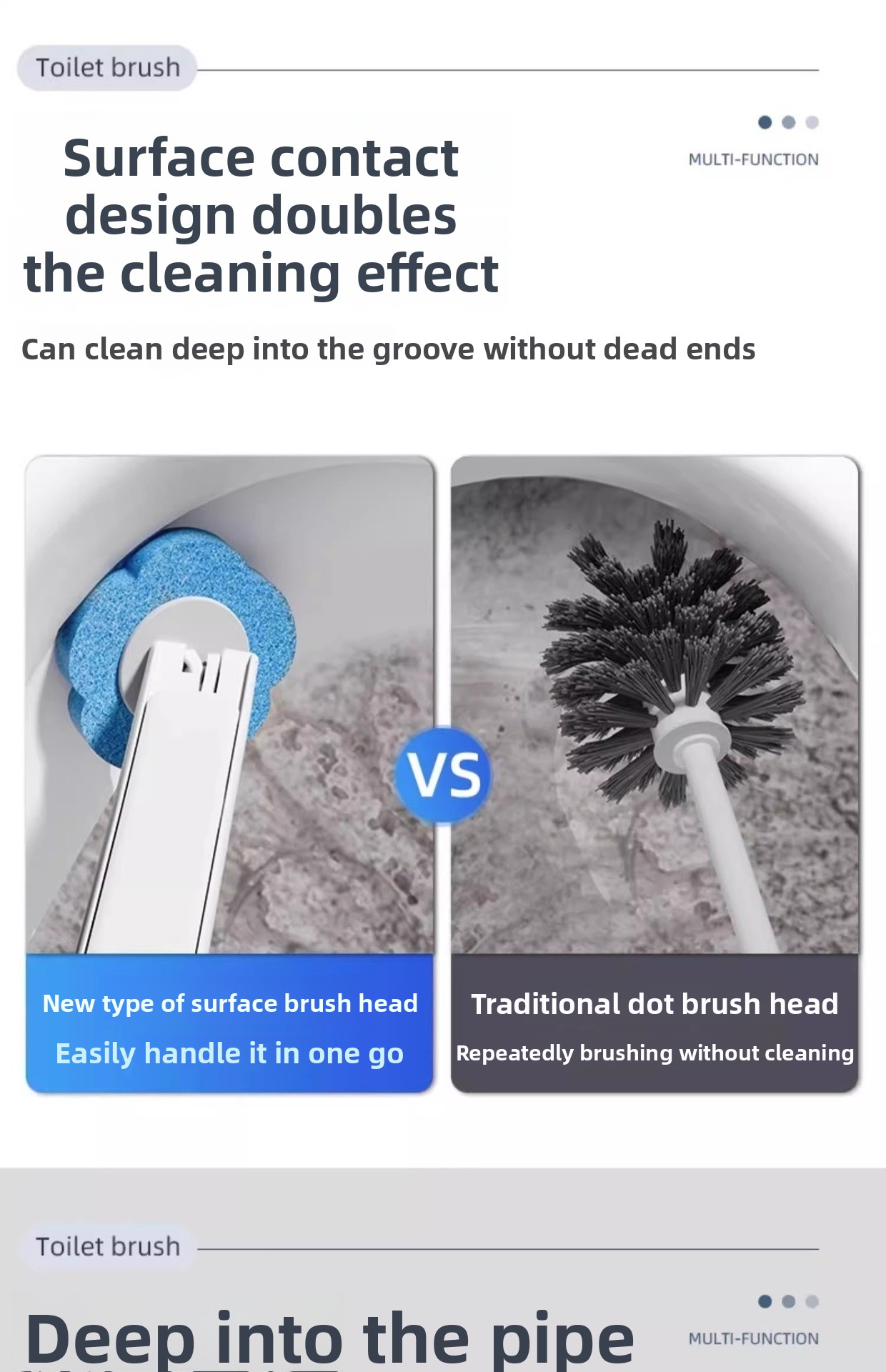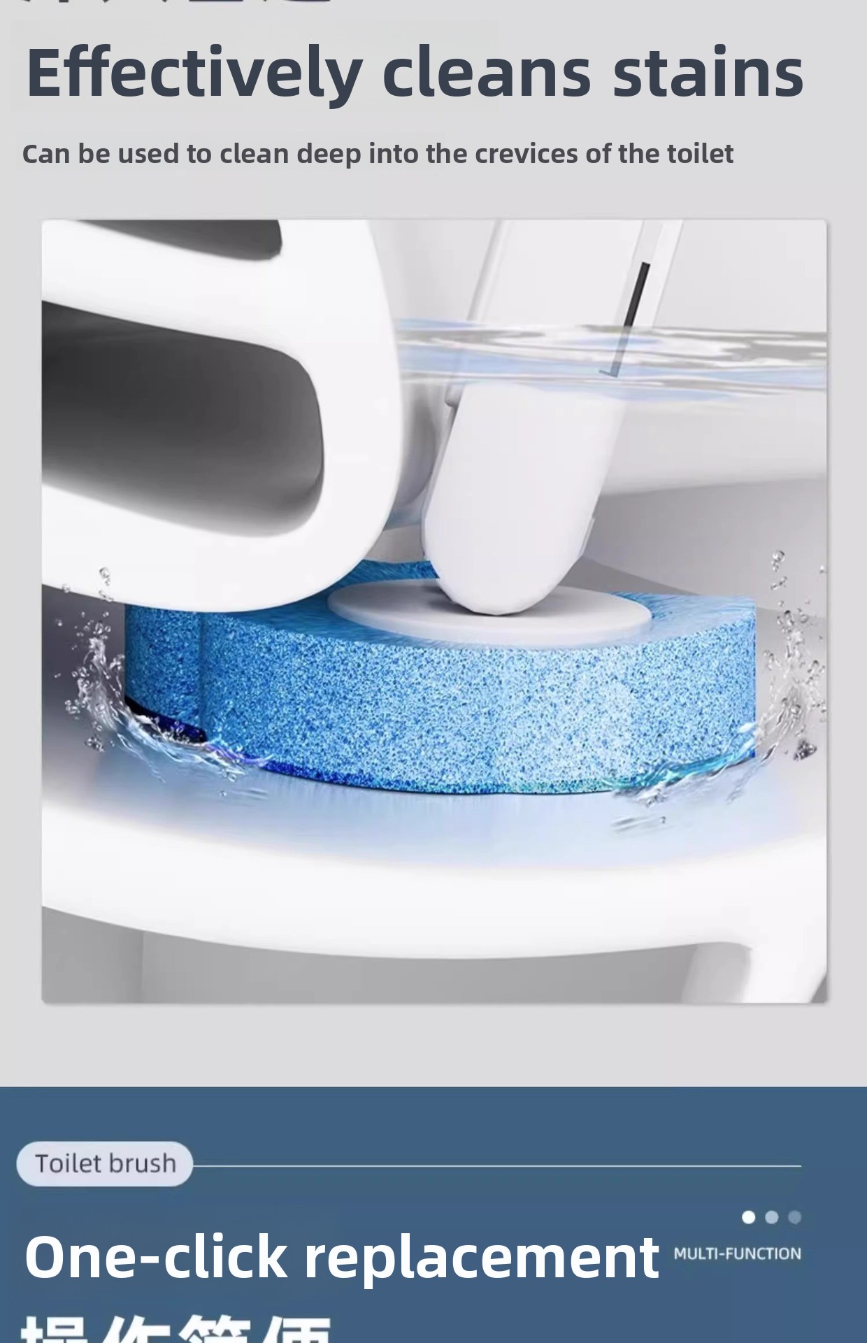 No-Dead-Corner Cleaning - Flexible brush head reaches difficult areas in toilet bowls